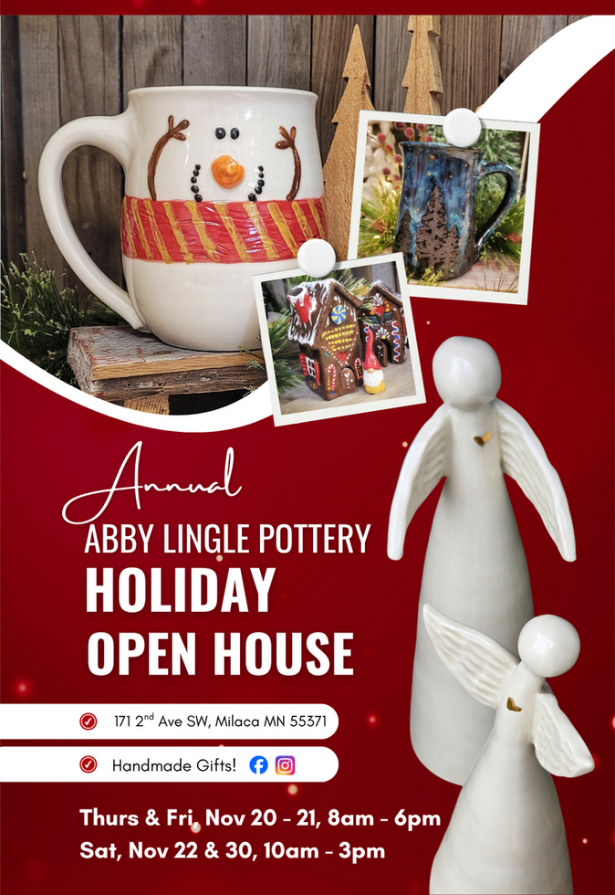 New pottery and holiday specials will be available at the Annual Holiday Event! Limited edition pieces! Don't miss my biggest event of the season!
